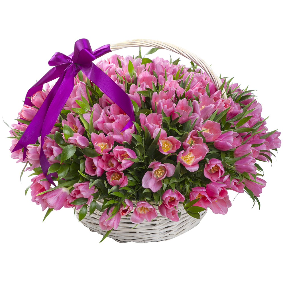 101 розовый тюльпан в корзине