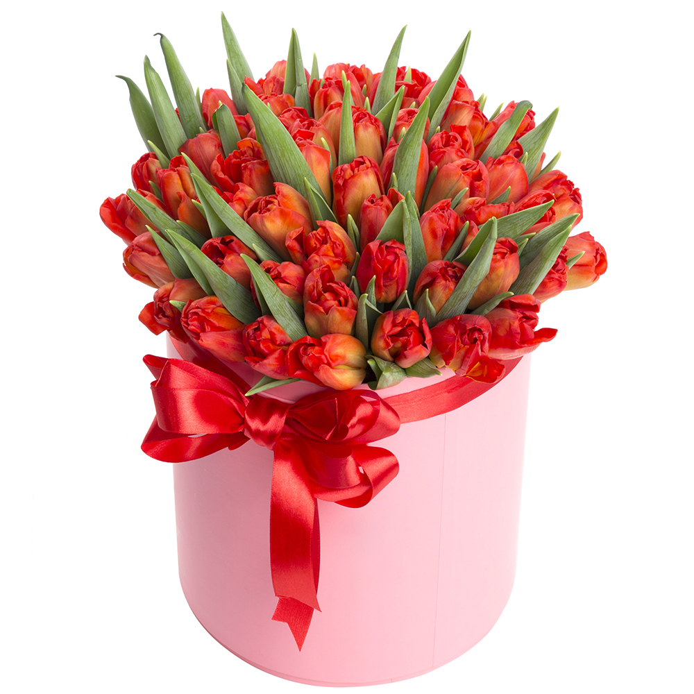 51 оранжевый тюльпан в шляпной коробке